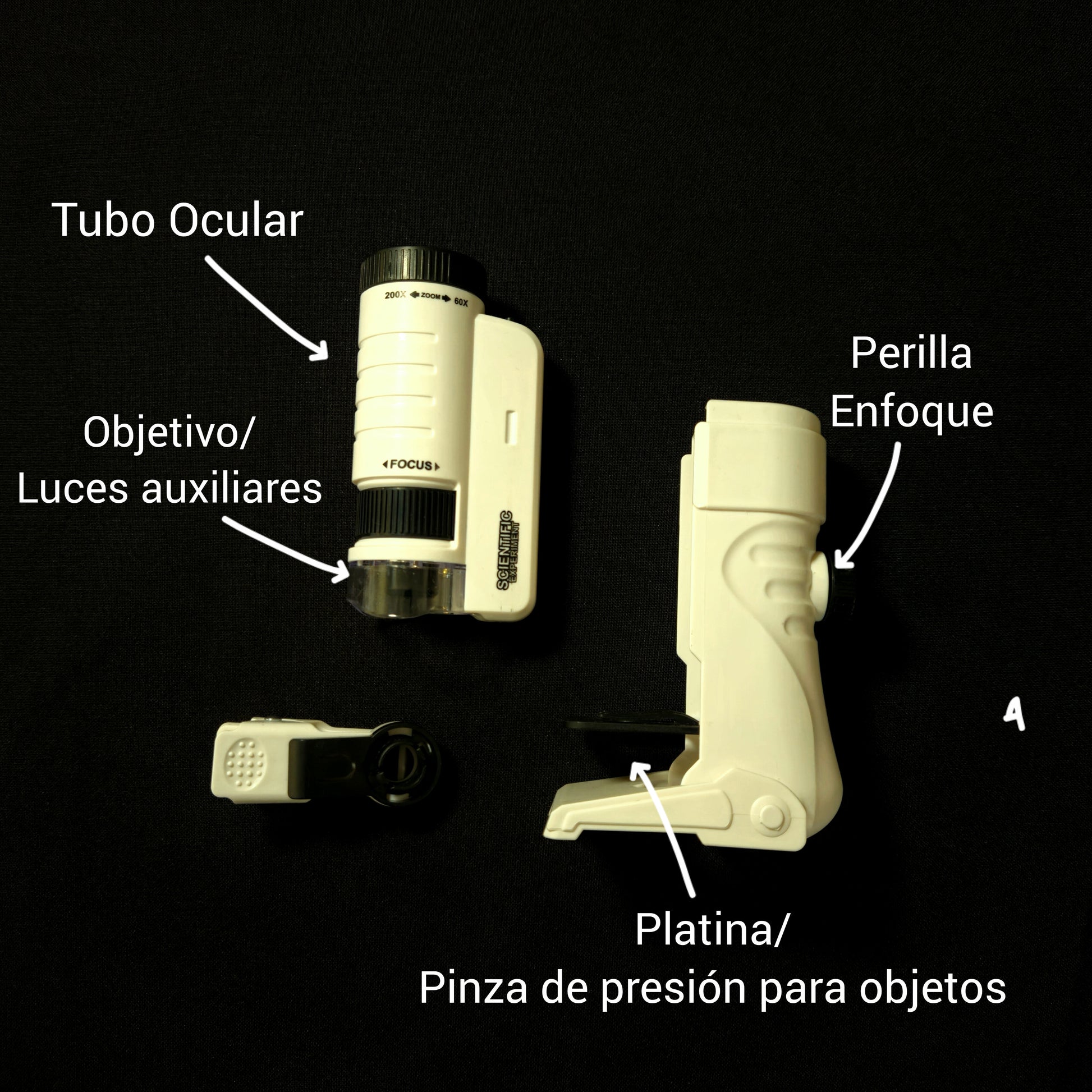Adaptador Universal para Celular: conecta el microscopio a tu smartphone para sacar fotos y videos de tus descubrimientos.
