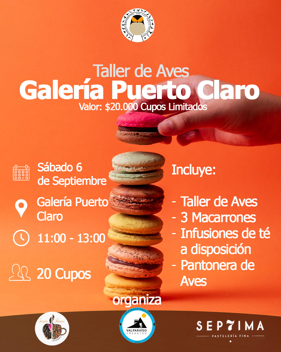 ¡Llega el PRIMER Taller de Aves con Té de Especialidad y Pastelería Fina en Valparaíso! El Sábado 6 de Septiembre a las 11:00 hrs, te invitamos a un taller donde se unen aves, té de especialidad y pastelería fina.
